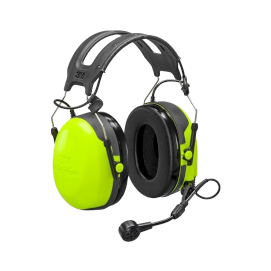 Ear defending headset with boom microphone and PTT on cup. Connects to a 2-way radio with a FLX 2 downlead